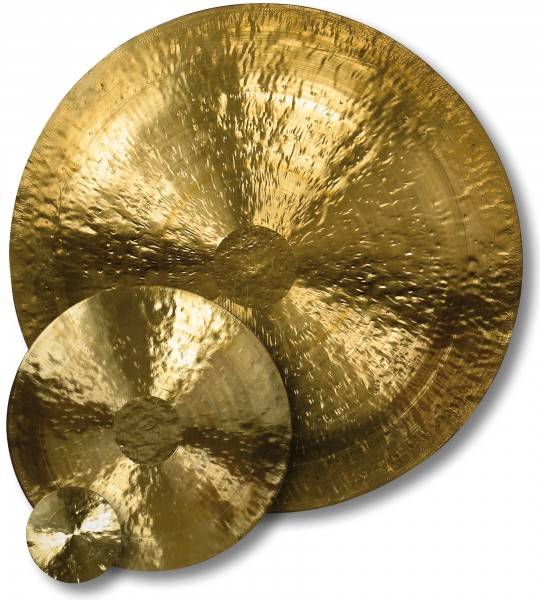 Chinesische TamTams (schwarz-gold-schwarz) und Feng-Gongs (ganz in gold) werden seit Jahrhunderten in Wuhan hergestellt. Gongs sind seit ewigen Zeiten im asiatischen Raum Instrumente, die neben traditionellen Musikstücken und Opern immer auch sakrale Bestimmung hatten. Wir suchen unsere Gongs vor Ort aus Tausenden, unter Berücksichtigung europäischem Tonempfindens, einzeln aus, versehen sie mit einer Gravur auf der Rückseite und garantieren so beste Qualität.