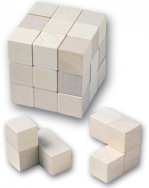 Der Soma-Würfel ist ein interessantes mathematisches Phänomen: Setzt man alle möglichen unregelmäßige Körper, die aus höchstens 4 Würfeln bestehen, richtig zusammen, ergibt sich