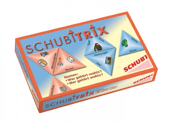 Wenn die dreieckigen Spielkarten so zusammengefügt werden, dass die beiden Wörter der aneinander liegenden Seiten zusammen passen, entsteht eine symmetrische Lösungsfigur. Mit SCHUBITRIX Deutsch erweitern die Kinder ihren Wortschatz und gewinnen mehr Sicherheit im Ausdruck - das kommt ihnen bei vielen Aufgaben im Sprachbereich zugute, zum Beispiel beim Formulieren eigener Texte.