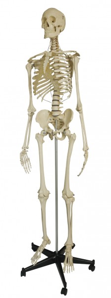Das Skelett wird mit einem fahrbaren 5-Fuß-Stativ und Staubschutzhülle geliefert und ist incl. Stativ ca. 180 cm hoch.