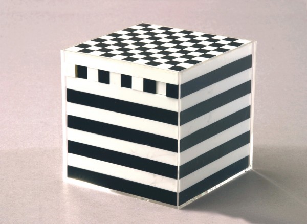 zerlegbar in 9 Platten, 9 Stäbchen, 10 Würfel. Kantenlänge 100mm