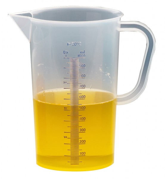 aus Polypropylen, mit Henkel und Ausguss, blaue Graduierung. 1000ml.
