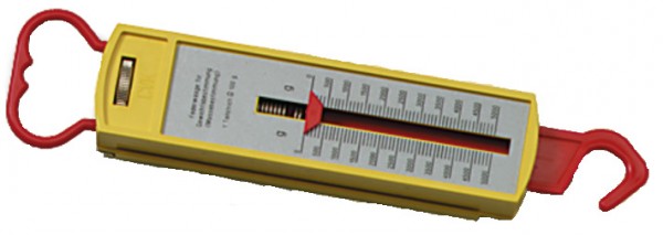Möchten Sie die Kraft messen, so benutzen Sie die Vorderseite mit der Newtonskala; und zum Ablesen der Masse die rückseitige Grammskala. Die Seite die Sie gerade nicht brauchen, können Sie unter der Abdeckplatte verschwinden lassen. An dem stabilen Kunststoffgehäuse steht ein Aufhängebügel sowie ein Lasthaken zur Verfügung. Das Schulranzen-Wiegen klappt damit besonders gut! Mit überdehnungsschutz. Newtonskala: 0 bis 50 N, Teilung 1N; Grammskala 0 bis 5000g, Teilung 100g. Gesamtlänge 190mm.