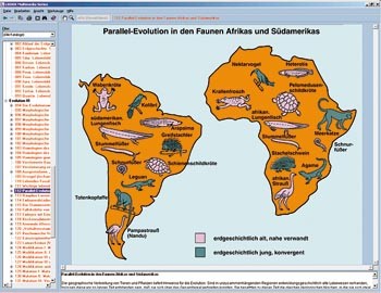 Der Weg der Evolution vom ”Nicht-Leben” zum Leben - Stellare, chemische und organische Evolution. Zeitlicher Ablauf. Entstehung der Himmelskörper und der chemischen Elemente. Entstehung von Prokaryonten. Abiotische Synthese von Aminosäuren, Oligopeptiden, Polypeptiden, Purin- und Pyrimidinbasen und Nukleinsäuresequenzen. Polynukleotid-Aggregate. Evolutionsstufen des Stoffwechsels: gärende, atmende, photosynthetisierende Prokaryonten. Ursuppe. Hyperzyklus nach EIGEN. Präkambrische Lebenszeugnisse. Evolution der Prokaryonten bis zum Pflanzen- und Tierreich. Urzeugungstheorien und Erkenntnis. Abstammungs- und Verzweigungsschema der fünf Organismenreiche. Endosymbiontenhypothese. Vielzeller-Entstehung. Gastraea-, Notoneuralia-Gastroneuralia und Coelom-Theorie. Eroberung des Landes. Saurier. Ablauf der Erdgeschichte. ”Geologische Uhr”. Grundlagen, Mechanismen und Wege der Evolution des Pflanzen- und Tierreichs. Evolutionsweisen. Morphologische Homologien. Brückentiere. Archaeopteryx. Evolution aus der Geographie, der Ontogenie, der Biochemie und des Verhaltens der Tiere. Parallel-Evolution. Biogenetisches Grundgesetz nach HAECKEL. Lamarckismus und Darwinismus. Natürliche Selektion und Selektion durch den Menschen. Isolation. Gendrift Adaptive Radiation. Kontinentalverschiebung. Prinzipien der Formenbildung. Ontogeniespiralen. Genetische Landschaft. Kulturelle Entwicklung des Menschen, Evolution der Sprachen. Tabelle der Formationen. Rekonstruktion prähistorischer Landschaften.