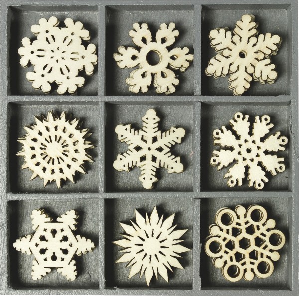 Produktinformationen "Holzbox Ornament Eiskristalle 45 Stück"