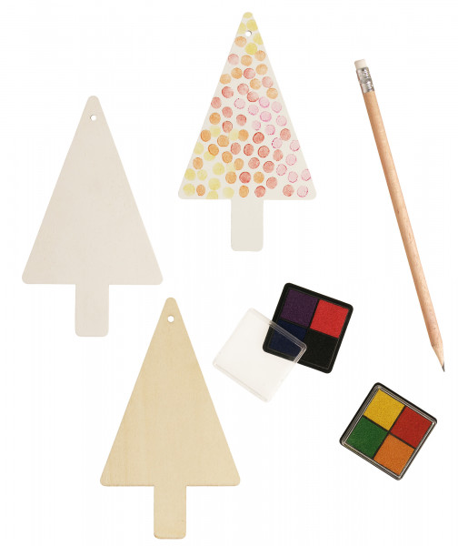 Aus den 6 Tannenbäumen können im Handumdrehen schöne Geschenke, Deko- oder Geschenkanhänger gebastelt werden. Mit etwas Farbe, Schmucksteinen, Glitzerpulver, Pailetten oder Glitterlinern entstehen so kleine Unikate.