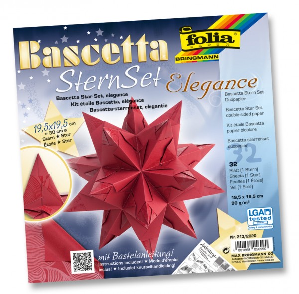 Bascetta-Stern Bastelset ”Elegance”- 90 g/m² Dreidimensionaler Origamistern zum Falten und... mehr