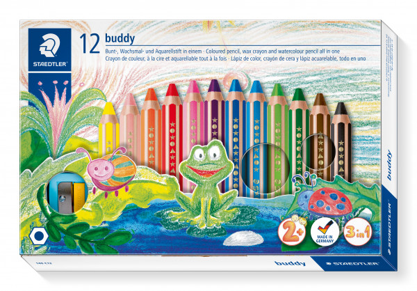 STAEDTLER Hexagonal-Buntstift buddy, 12er Kartonetui +Spitzer