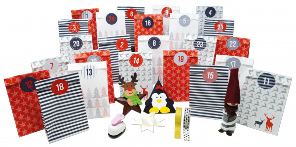 Die 24 fertig gepackten überraschungstüten mit tollen Bastelprojekten versprechen jeden Tag weihnachtlichen Bastelspaß. Jede der hübschen Geschenktütchen enthält das Material für ein Bastelprojekt. Ob Schachtel-Friends, Schneeflocken, Tännchen oder kleine Holz Nikoläuse, in jeder Tüte ist das Bastelspaß garantiert!