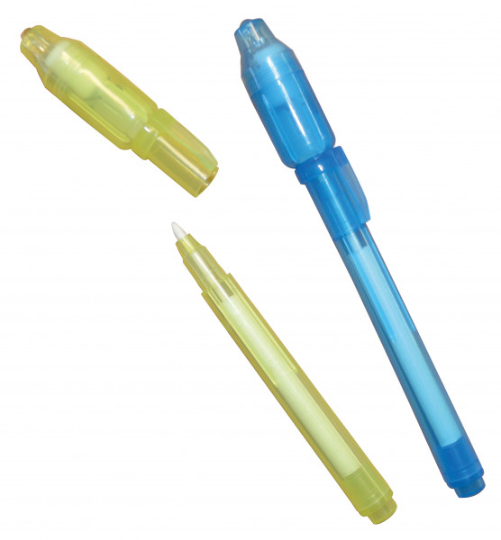 Geheime Botschaften verschwinden durch die magische Tinte sofort und werden durch das UV-Licht am Stift sichtbar. 6 Stifte farbig sortiert.
