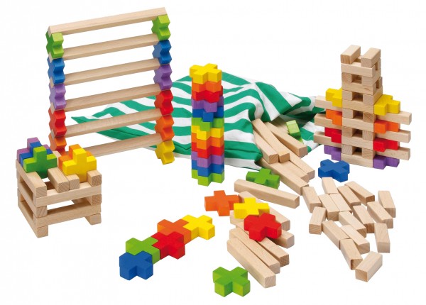 Mit diesen bunten und naturbelassenen Spielsteinen sind fast unendliche Spielmöglichkeiten gegeben. Bauen in alle Richtungen - flache Bilder kreieren, oder hoch hinaus - mit diesem Konstruktionsmaterial kommt nie Langeweile auf. Praktisch im Baumwollsäckchen. Spielspannung alleine und mit mehreren Mitspielern. Das Erfinden eigener Spielregeln wird angeregt.
