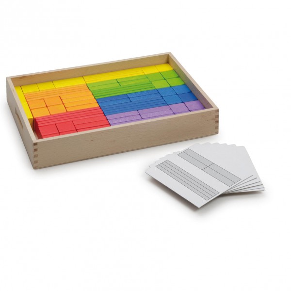 Das Kind lernt z.B. dass ein Würfel mit einer Kantenlänge von 30 mm und ein Quader von 30 x 15 x 60 mm gleich groß sind, indem man mit Hilfe einer der sechs verschiedenen Legekarten jeweils zwei der Körper so nebeneinander legt, dass sie im Gesamten (Volumen) gleich groß sind.