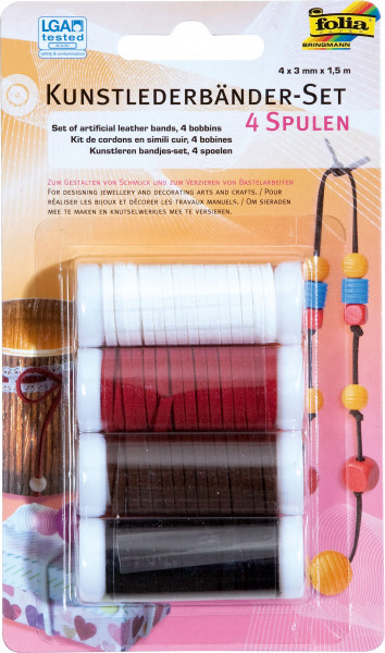 Produktinformationen "Kunstlederbänder-Set 4 Spulen, 4 x 3mm x 1,5m"