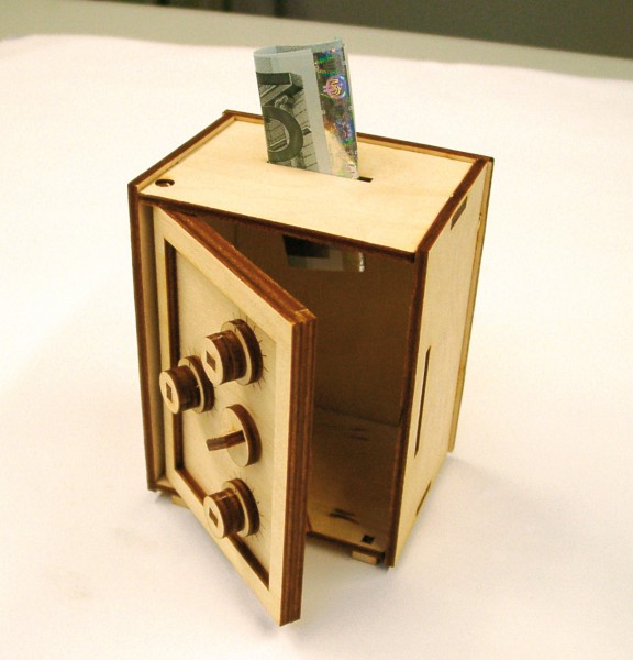 Sparschweine sind langweilig! Die Idee, eine Sparbüchse in einen Tresor zu verwandeln ist da schon viel interessanter. Die Kinder lernen, wie ein Zahlenschloss mit unzähligen Möglichkeiten funktioniert. Durch hochpräzise CNC - Fertigung ist es gelungen, einen perfekt funktionierenden Tresor aus Holz herzustellen. Sämtliche Teile sind CNC - gefräst und müssen nur noch geschliffen und zusammengeklebt werden. Der Bausatz beinhaltet 30 Teile. Höhe 10 cm, Breite 8 cm, Tiefe 6,5 cm