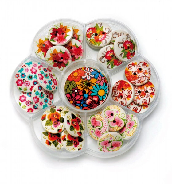 Produktinformationen "Knöpfemix, aus Holz, 32 Stück Bunt bedruckt"