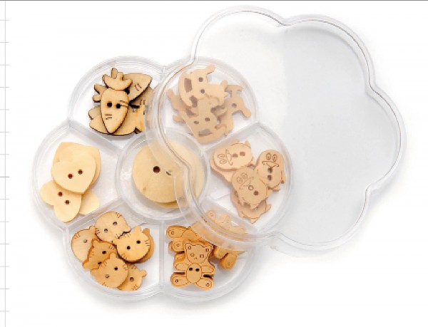Produktinformationen "Knöpfemix aus Holz, 40 Stück Figuren natur"