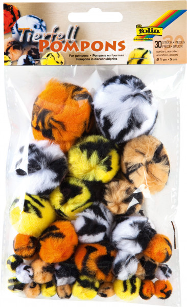 Produktinformationen "Pompons, 30 Stück Tiermuster Mix, Größen sortiert"