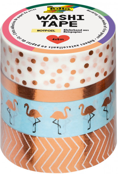 Produktinformationen "Washi Tape Set aus 4 Rollen à 5m HOTFOIL rosegold, 3x15mm + 1x5mm"