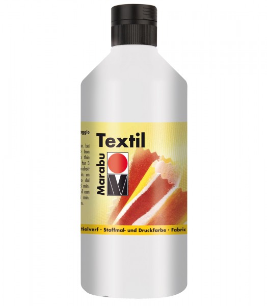 Die universelle Stoffmal- und Druckfarbe auf Wasserbasis für helle Textilien für Schule, Hobby, Freizeit und Kunstgewerbe. Marabu-Textil ist waschmaschinenbeständig bis 60°C. Die leicht vermalbare Farbe fließt beim Malen nicht in unbemalte Stoffteile und ist daher hervorragend für alle Stoffdrucktechniken wie auch für das Schablonieren, die Sun- und Spritztechnik geeignet. Die Farbtöne besitzen eine gute Lichtechtheit, sind untereinander mischbar und mit Wasser verdünnbar. Die Deckkraft von Marabu-Textil ist bei hellen Stoffen sehr gut. Marabu-Textil eignet sich für alle appreturfreien Textilien aus Baumwolle, Leinen, Jute, Seide, Mischgewebe und Synthetik. Marabu-Textil wird einfach durch Bügeln oder im Backofen dauerhaft im Stoff fixiert. Die Spezialverschlüsse der 500-ml- und 1000-ml-Flaschen ermöglichen ein optimales Ausgießen der Farbe.