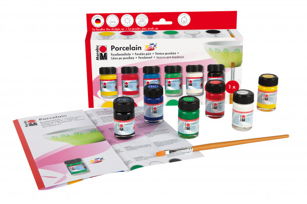 Produktinformationen "Marabu Porcelain&Glass Starter-Set 6x15ml + Pinsel + Anleitung"