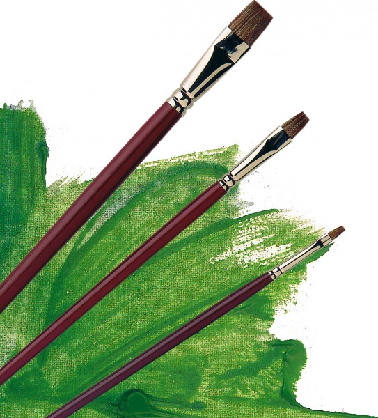 ölmalpinsel flach aus feinsten reinen, hellen Rindshaaren, mit Nickelzwingen und langen,... mehr