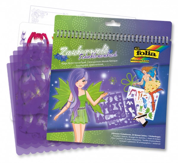 Produktinformationen "Schablonenbuch Zauberwelt 5 Schablonen, 1 Stickerbogen"