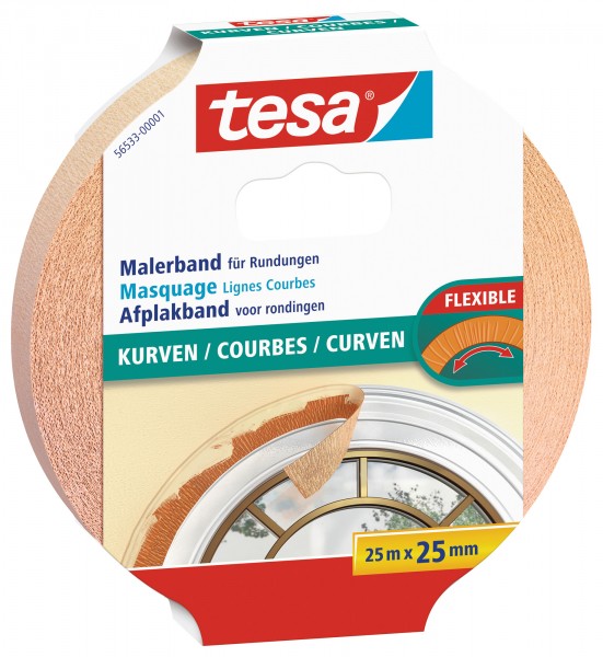 Rundungen und Kurven sind eine echte Herausforderung im Rahmen von Malerarbeiten. Ob Sie einen Fensterrahmen mit abgerundeten Ecken vor Farbspritzern schützen oder freie Formen an die Wand eines Kinderzimmers bringen möchten, das tesa® Malerband KURVEN ist die richtige Wahl. Es ist sehr stark gekreppt und deswegen enorm flexibel in der Anwendung. Die extra starke Klebekraft sorgt für einen sicheren Halt während der Renovierungsarbeiten - auf glatten und rauen Oberflächen. Das besonders dehnbare tesa® Malerband KURVEN überzeugt durch die überlegene tesa®-Qualität und lässt sich schnell und einfach anbringen. Ebenso lässt es sich im Innenbereich innerhalb von sieben Tagen bequem und ohne Rückstände entfernen. Das innovative tesa® Malerband KURVEN ist für alle Farbtypen geeignet, wird zu 70% aus nachwachsenden Rohstoffen hergestellt und ist Ihr kompetenter Helfer, wenn Sie unregelmäßige Formen abkleben möchten.