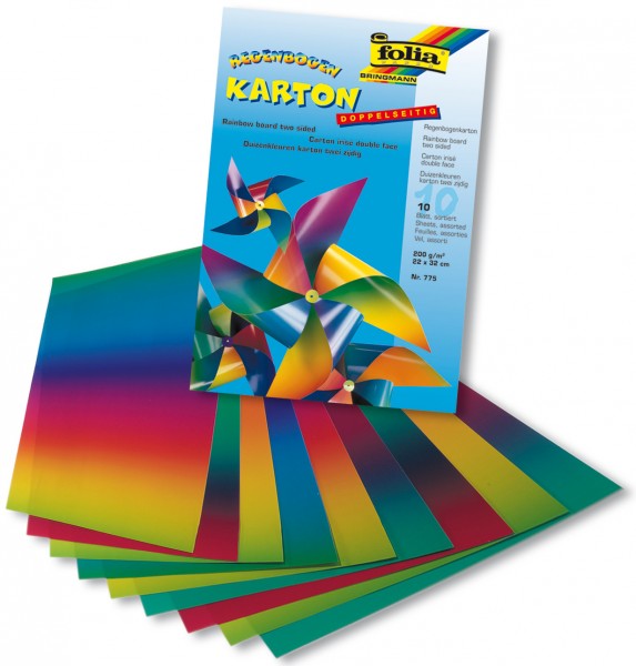zweiseitig bedruckter Tonkarton in verschiedenen Farbkombinationen.