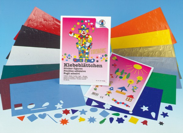 Packung mit 12 Blatt gummiertem Glanzpapier. Jeder Bogen in einer anderen leuchtenden Farbe im Format 14x20 cm. Auf jedem Bogen sind die verschiedensten Figuren und Formen eingestanzt und können mühelos abgenommen werden.