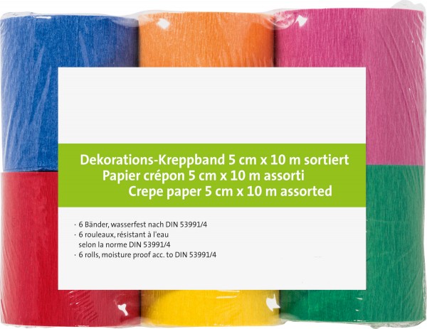 Produktinformationen "Bastelkrepp 10m x 5cm sortiert 6 Rollen, wasserfest"