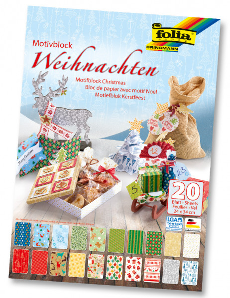 Produktinformationen "Motivkartonblock Weihnachten 270g/m 24x34 cm, 20 Blatt in 10 Motiven"