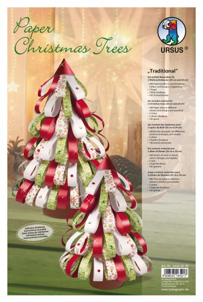 Auf der Fensterbank, Weihnachtstafel oder neben dem Adventsgesteck, diese Bäumchen sind überall ein Hingucker! Die Papierstreifen werden an die Kegel geklebt und können anschließend mit den Schmucksteinen dekoriert werden. Set enthält Material für 2 Weihnachtsbäume (20cm+24cm), Inhalt: 208 Papierstreifen in verschiedenen Farben und Designs, vorgestanzt,