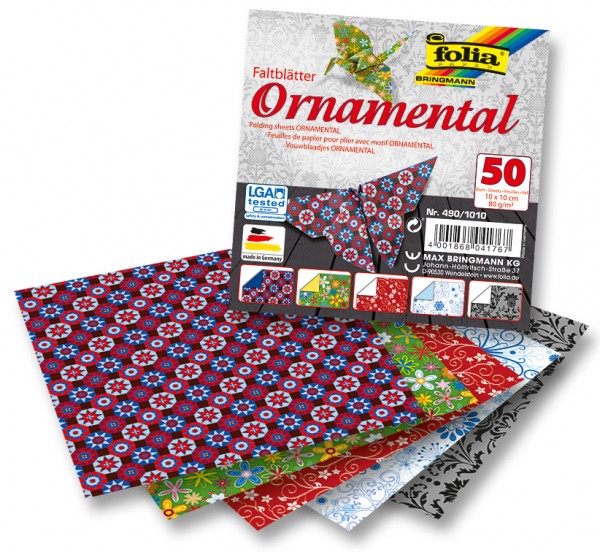 Produktinformationen "Faltblätter 80g/m², ORNAMENTAL 15x15cm, 50 Blatt, 5 Motive sortiert"
