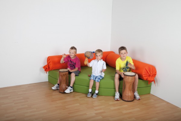 Vierteilige Kuschelecke mit 2 Viertelkreiselementen. Diese sind nicht miteinander verbunden, so können Sie verschiedene Varianten stellen. Nutzen Sie wenig Raum optimal aus.