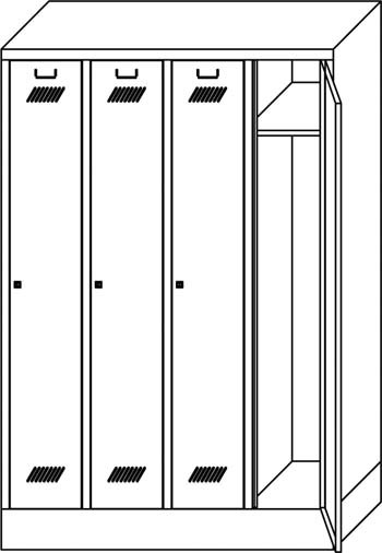 Kleiderschrank mit Sockel und Drehriegel, vierteilig 1850mm hoch, 500mm tief, 1200mm breit,... mehr