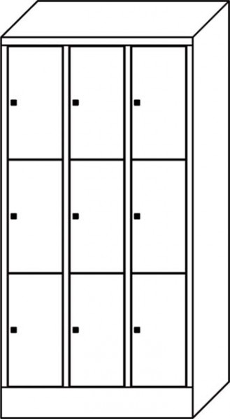 Produktinformationen "Schließfachschrank m Sockel,9Fächer 185x50x93cm HxTxB, mit Drehriegel"