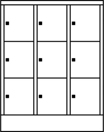 Produktinformationen "Schließfachschrank m Sockel,9Fächer 118,7x50x93cm HxTxB mit Drehriegel"