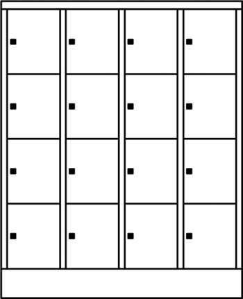 Schließfachschrank mit Sockel und 16 Fächern 151,8cm hoch, 50cm tief, 160cm breit... mehr