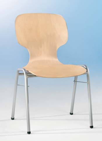 Holzschalenstuhl mit Rundrohrgestell, Gestell Rundrohr, kunststoffpulverbeschhichtet, Kunststoffbodengleiter, Sitzschale mehrfach verleimtes formgepreßtes Bucheschichtholz, ergonomisch gearbeitet, natur lackiert mit Wasserlack (entspricht B1 - schwer entflammbar)