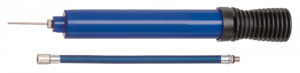 Auf Grund des Doppelhubs sind auch größere Bälle im Nu aufgepumpt. Der mitgelieferte Schlauch sorgt für ein langes Leben der Ventilnadel. Diese kann nach Gebrauch im Griff verstaut werden und geht somit nicht verloren. Die Pumpe wird in blau geliefert.