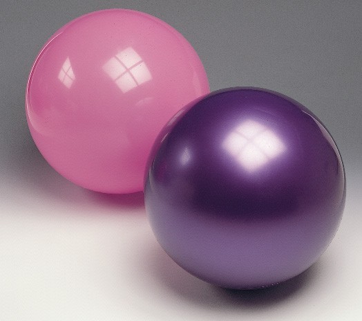 Die verlangsamte Bewegung des Zeitlupenballs erleichtert das Hantieren. Material: aus Ruton®, in blau und rot, mit Ventil. Maße: ø35cm, ca. 300g