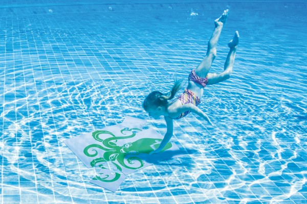 Puzzles jeweils bestehend aus 12 Teilen, beidseitg bedruckt mit lustigen Motiven. Die einzelnen Kunststoffteile sinken zu Boden und müssen auf dem Beckenboden zusammengefügt werden. Lieferbar in 2 Ausführungen.