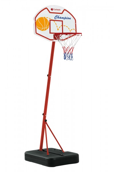 Basketball-Anlage mobil mit fahrbarem Fußgestell welches zur Stabilisierung mit Sand oder Wasser gefüllt wird. Durch das mobile Fußgestell ist es jederzeit und überall schnell aufgebaut und einsatzbereit. Das höhenverstellbare Kunststoff-Zielbrett ist direkt auf der Stahlrohrsäule montiert.