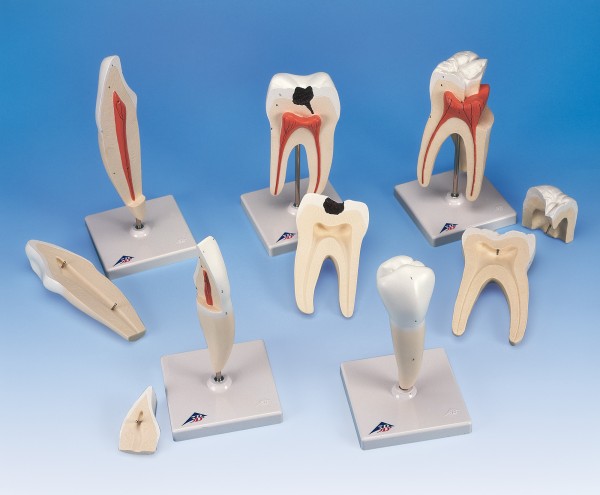Die komplette Serie besteht aus 5 Zahnmodellen, einzeln auf abnehmbarem Stativ montiert.
