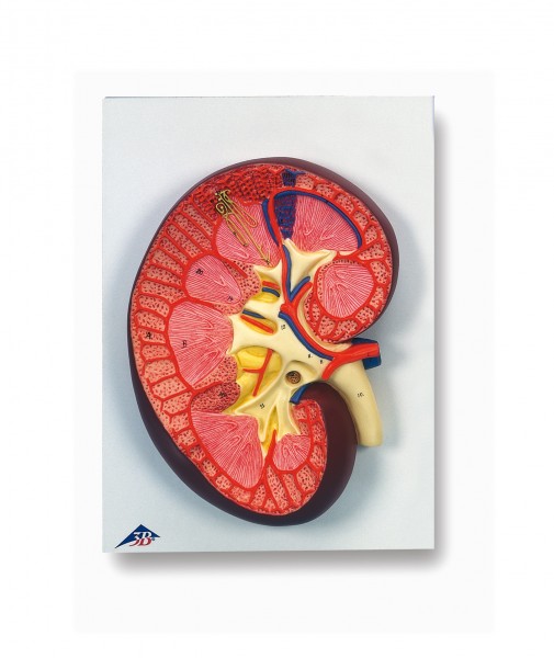 Nierenschnitt 3-fache Größe Längsschnitt der rechten Niere. Auf Grundbrett. 33... mehr