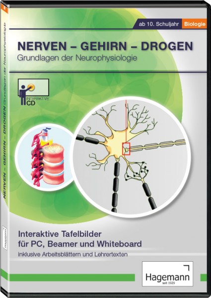 Die CD-ROM stellt die Grundlagen der Neurophysiologie und die Wirkungsmechanismen der legalen und illegalen Drogen vor. Man kann z. B. mit einer Lupe die Bestandteile des Neurons betrachten oder die Funktionen von Sympathikus und Parasympathikus mit und ohne dem Einfluss von Nikotin erarbeiten.