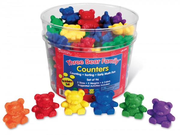 Diese netten Plastikbärchen gibt es in drei verschiedenen Größen und Gewichten. Inhalt des Sets (3 Gewichtsklassen): 24 große Papa-Bären (je 12g), 24 mittlere Mama-Bären (je 8g) und 48 kleine Kinderbären (je 4g) in 6 verschiedenen Farben.