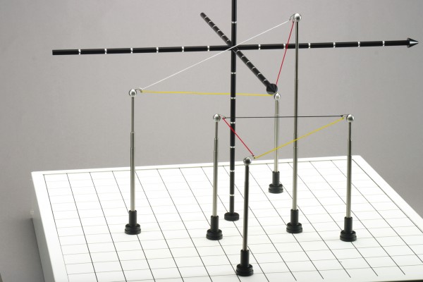 von 70cm x 70cm darstellt. Die Raumpunkte werden durch kleine Metallkugeln verdeutlicht, die sich am Ende einer Teleskopstange auf einem magnetischen Fuß befinden. Hieraus ergibt sich eine kontinuierliche Einstellbarkeit jedes Raumpunktes.