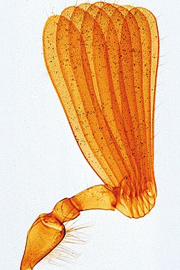 2. Apis mellifica, Honigbiene, Sammelbein mit Körbchen