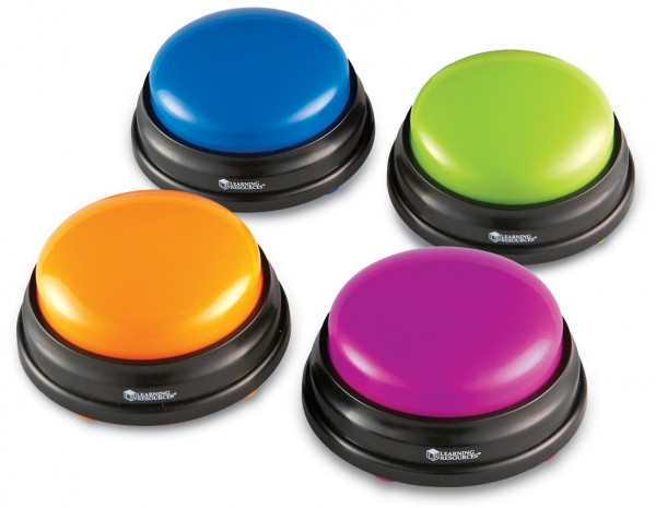 Mit Hilfe der Antwort-Buzzer können sie Schwung in Ihren Unterricht bringen. Wer weiß die Anwort? Wer drückt am Schnellsten? Die robusten Buzzer haben einen ø 9 cm und benötigen jeweils 2 AAA Batterien (nicht enthalten).